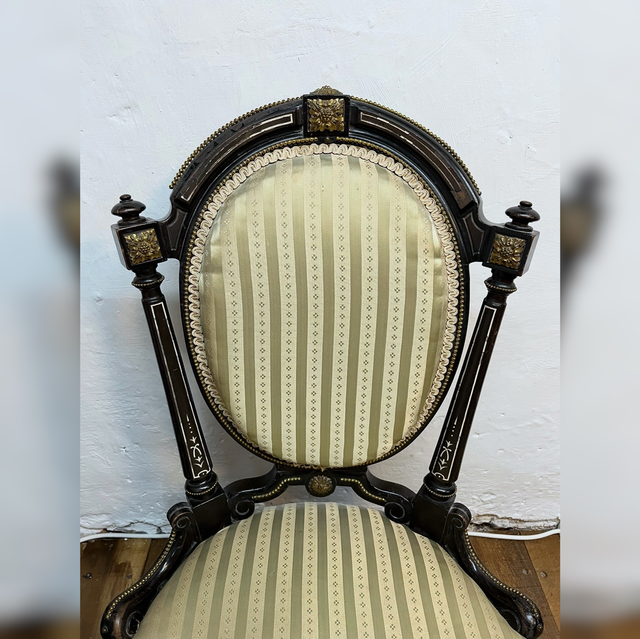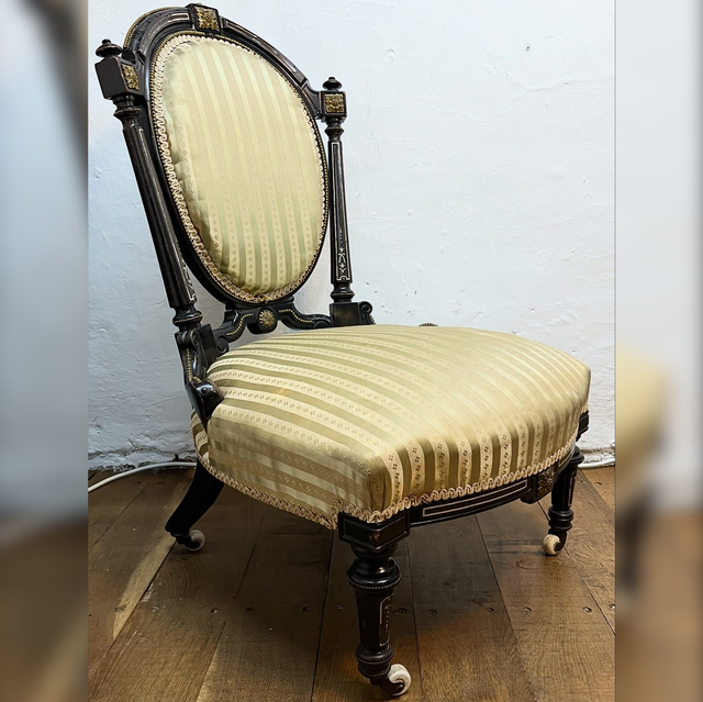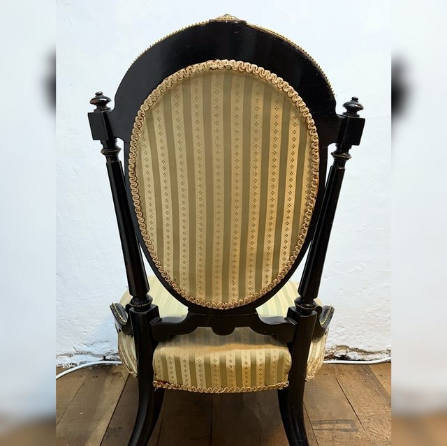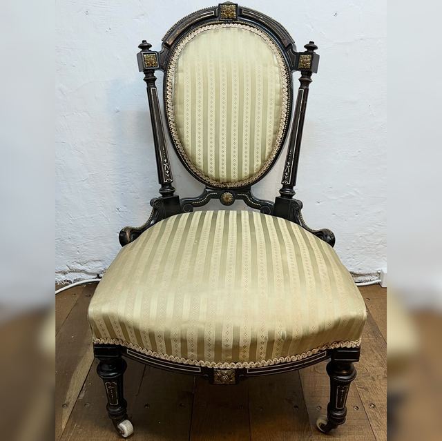 A 19th Century Victorian Ebonised Nursing Chair With Cream And Gold Striped Upholstery