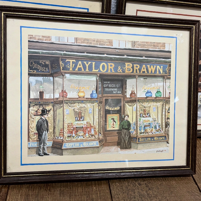 A set of three framed prints by artist G. Cartwright from a larger series titled “Bygone Days”