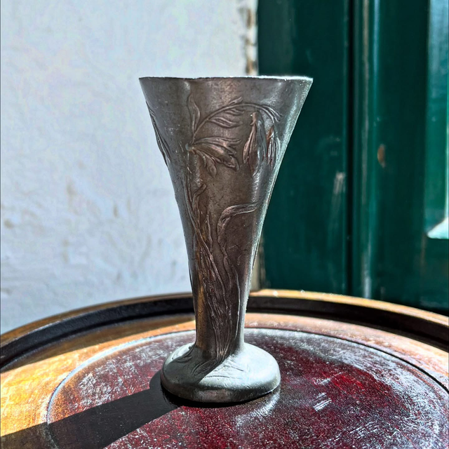 An Art Nouveau Kayserzinn pewter vase, likely designed by Hugo Leven for J.P. Kayser & Sohn AG.