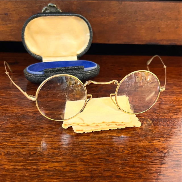 A beautifully preserved pair of early 20th century rolled gold folding spectacles, an elegant and highly functional example of period eyewear design. Crafted with slender rolled gold frames, favoured for their durability, warm tone, and lightweight comfort, these spectacles showcase the refined engineering typical of high-quality opticians’ work between the Edwardian and interwar periods.