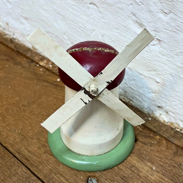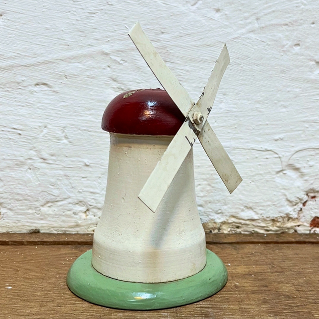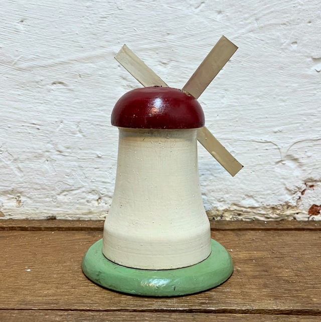 Thoughtfully constructed and full of artisanal appeal, the blades turn freely, and the entire piece displays the subtle patina and irregularities that only true hand craftsmanship can offer. It sits effortlessly in premium interiors; from curated rustic spaces to refined cottage, farmhouse, or eclectic settings; and brings a sense of authenticity to any folk-art or money-box collection.
