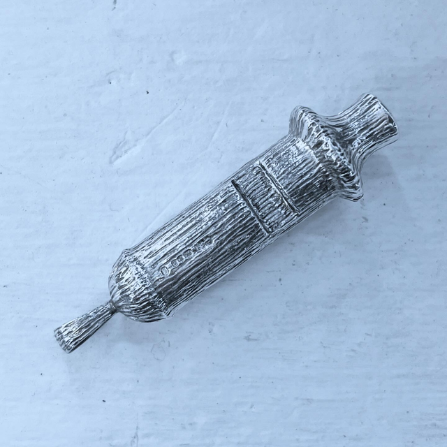 A beautifully preserved piece of tactile history, this sterling silver whistle, expertly crafted by Clifford & Tull, London, 1977, is both an elegant collectible and a fully functional object.