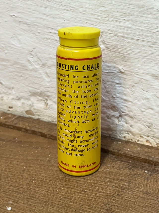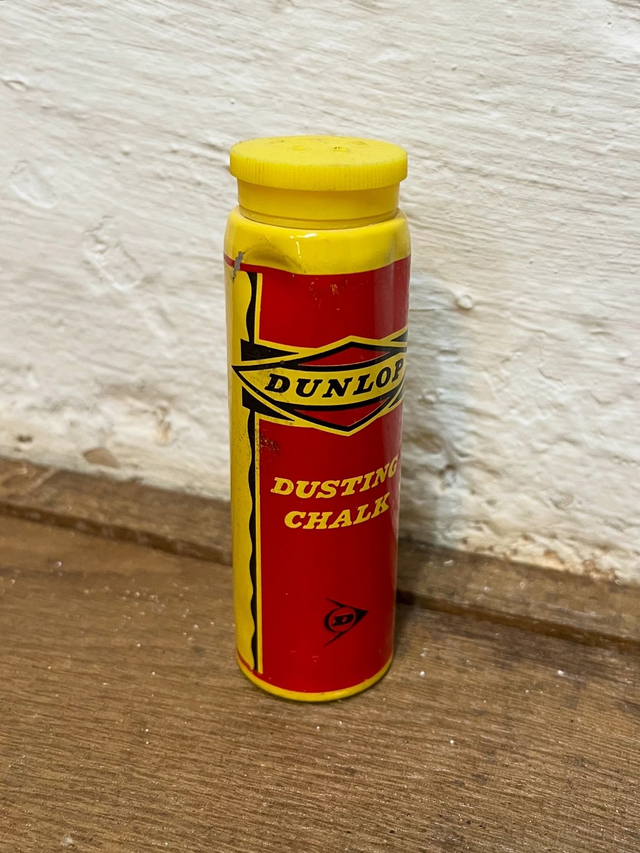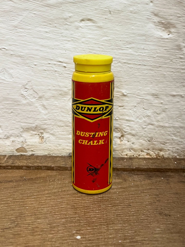 Two vintage Dunlop tyre chalk tins, one is complete with original contents and sealed (New/ Old Stock), the second retains around half of the original contents.
